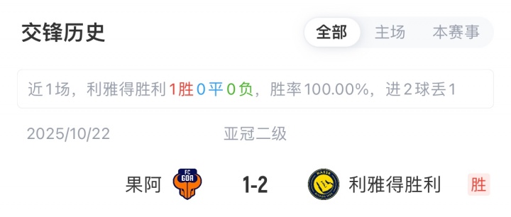 到手亚冠二级小组赛3轮全胜位居D组第一,联赛7轮全胜积21分位居沙特联榜首;果阿亚冠二级小组赛3轮全负位列D组垫底,联赛14胜6平4负积48分位居印度超第二。
