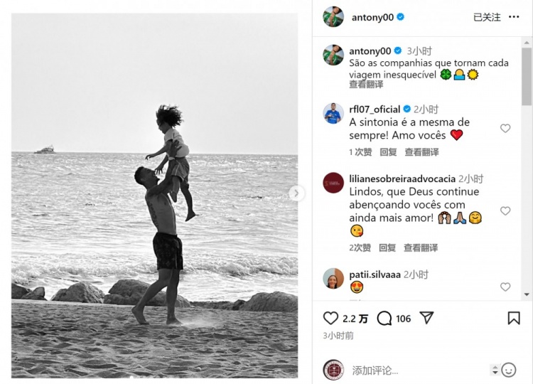 享受好意思好时光!安东尼社媒共享度假相片,本赛季5场1球1助