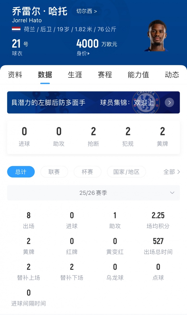 本赛季,哈托更多是算作交替球员,本赛季于今为切尔西出场8次,孝敬1次助攻,他商酌出场527分钟。他现在的德回身价为4000万欧。