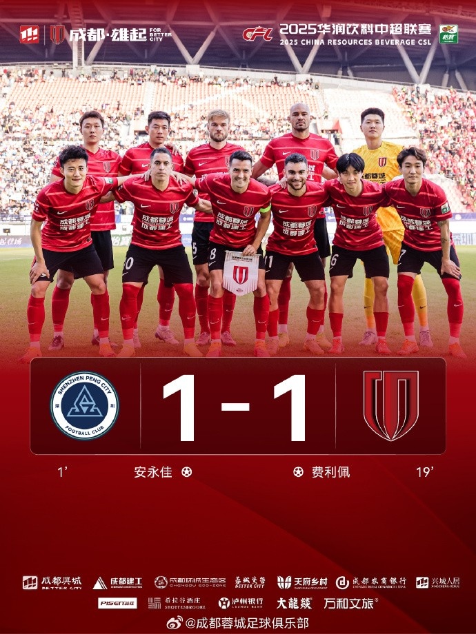 11月22日下昼,2025华润饮料中超联赛第30轮,成王人蓉城客场挑战深圳新鹏城,迎来本赛季联赛收官战!上半场开场不到1分钟对方打入一球。随后,成王人蓉城反客为主,胁制在对方门前制造险情。第19分钟,费利佩的强力头槌将比分扳成1-1。下半场易边再战,成王人蓉城仍占据优势,可惜未能将契机回荡为进球。全场补时第3分钟,对方球员在禁区内出现手臂触球,主裁判第一时辰判罚点球,但在不雅看视频回放后进行改判,点球被取消。最终,成王人蓉城1-1战平深圳新鹏城。至此,成王人蓉城以17胜9平4负积60分的收货位列第三名,创成王人足球顶级联赛最高积分。