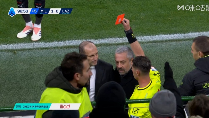 11月30日讯 米兰vs拉皆奥补时第95分钟,裁判介入看VAR,查抄帕夫洛维奇手球!阿莱格里怒了!被出示红牌!