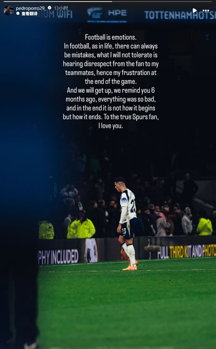 对此,波罗在Instagram发文作出回答,他写说念:“足球即是厚谊,在足球中,如同在生涯中,总会有犯错的本事,我毫不成容忍的是听到球迷对我的队友不尊重,这即是我在比赛为止时感到颓落的原因。”