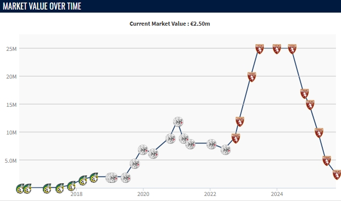 受伤前,舒尔斯曾受到国米、利物浦、阿森纳等多支权门球队情态,如今身价从2500万欧沿途下降至250万欧。