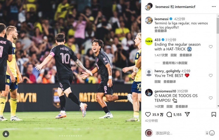 10月19日讯 好意思职联比赛,梅西3射1传,迈阿密海外客场5-2打败纳什维尔,通例赛第三名收官。