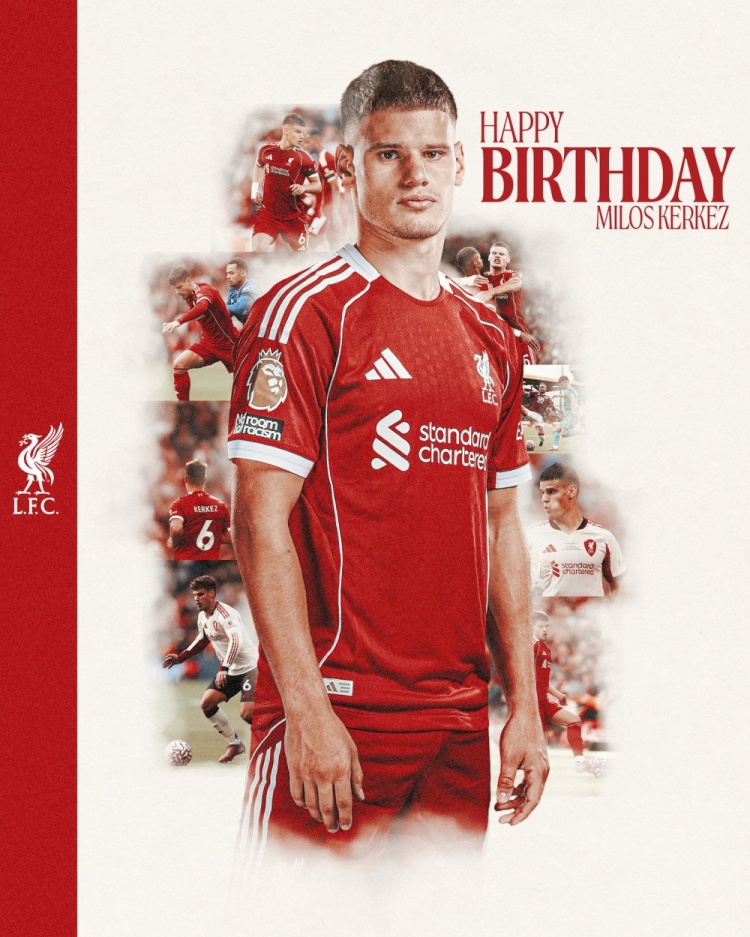 利物浦官方社媒晒出为凯尔凯兹制作的寿辰海报,配文:“祝你渡过好意思好的一天,米洛斯。”