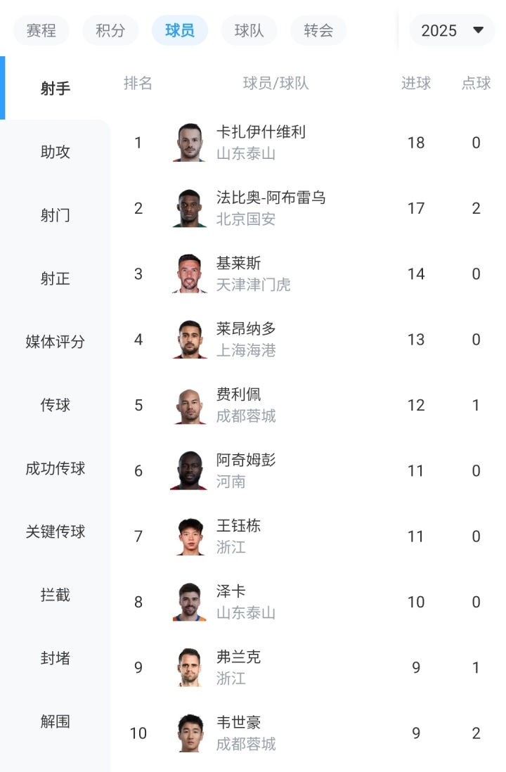 45分钟即登顶!卡扎伊什维利半场戴帽疏淡法比奥,登顶中超弓手榜