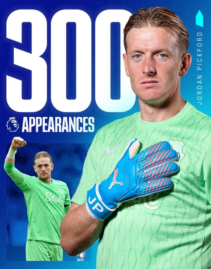 皮克福德迎埃弗顿生计300场英超里程碑,已完成85次零封