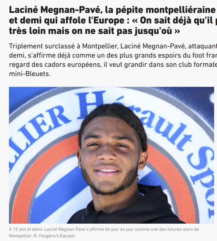 该媒体指出,在蒙彼利埃衔接跳班三个年龄段的15岁半前卫默格南,已俨然成为法国足球最瑰丽的但愿之星。在欧洲豪强的密切宥恕下,他渴慕在培养他的俱乐部与法国后生队中稳步成长。