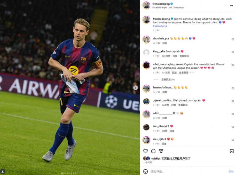 本场比赛德容当作队长首发出战,赛后他在社媒发文饱读舞球队写说念:“咱们会赓续坚握一直以来作念的,发愤考验并提高我方的清楚,感谢巴萨球迷的复旧!”
