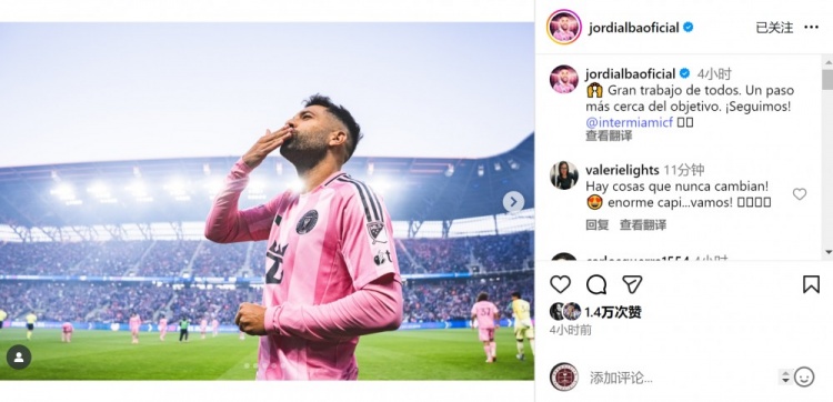 11月24日讯 好意思职联东区半决赛,阿尔巴首发出战,迈阿密海外4-0打败辛辛那提FC,晋级下一轮。