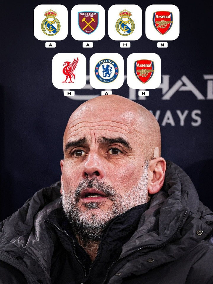 未来一段时间,曼城的赛程异常艰难,他们将在英超、欧洲冠军杯、足球锦标赛季杯(终极赛)、足总杯中连战强敌,四线6场对决中要对阵皇马、利物浦、切尔西,还要两战阿森纳。
